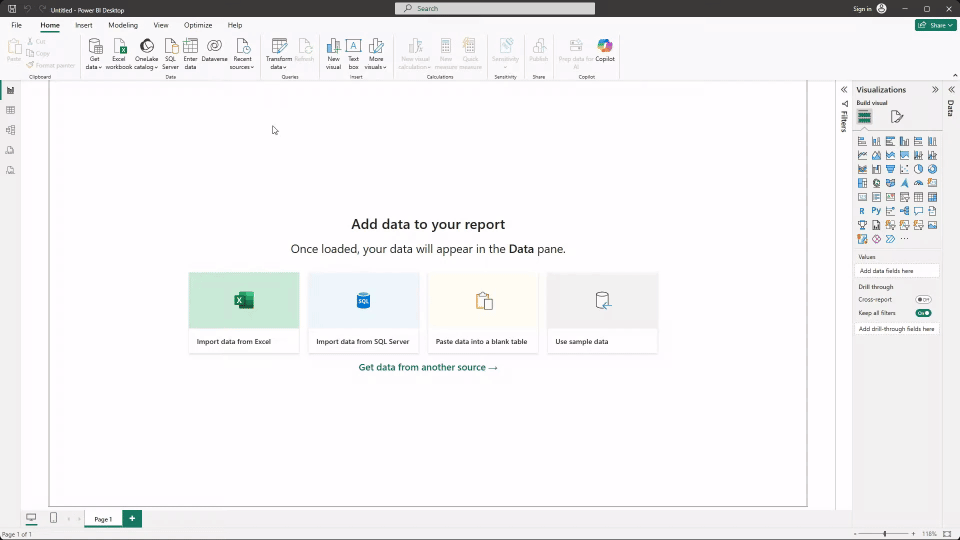 - Click Get data from the Home tab