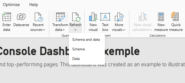 This refresh is manual and happens only when you click the refresh button. It uses the same file paths, credentials, and connection logic defined in the report. You can also choose to refresh only the data or update the schema by clicking the arrow next to the Refresh icon.